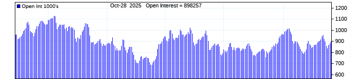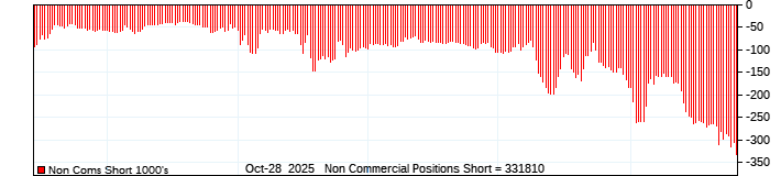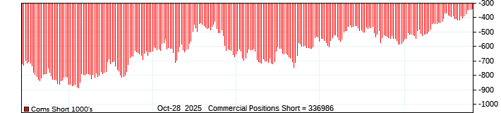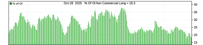 The top chart is fixed with the lower 3 panes available to show the various dataseries provided by the CFTC.