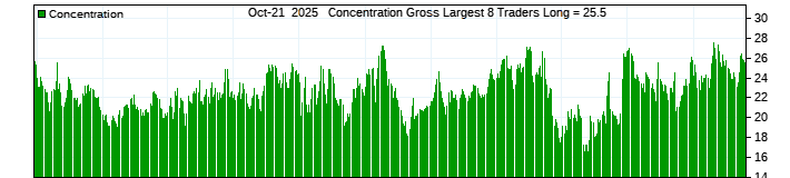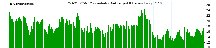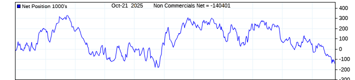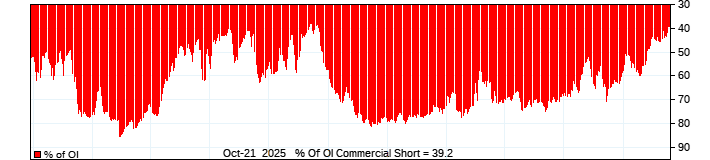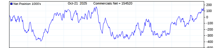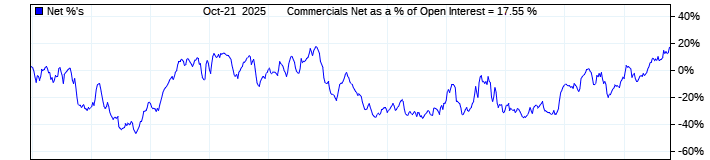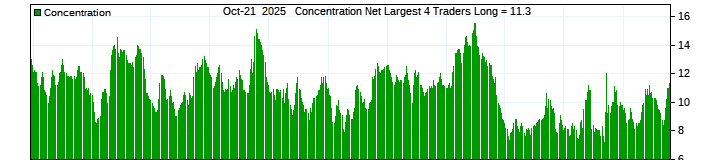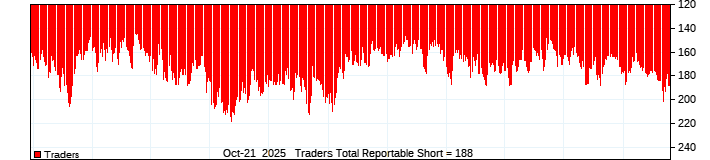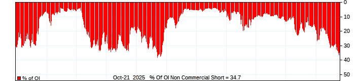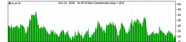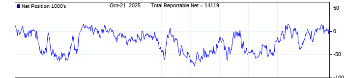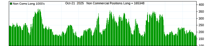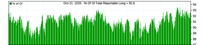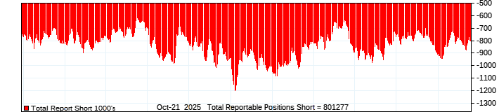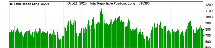 The top chart is fixed with the lower 3 panes available to show the various dataseries provided by the CFTC.