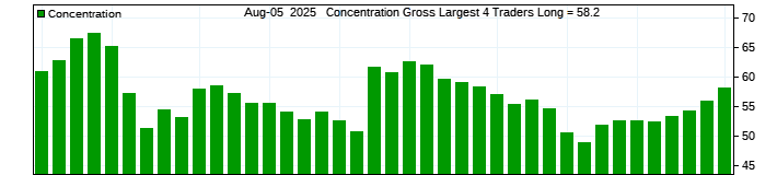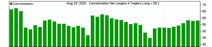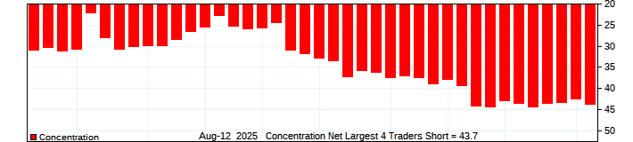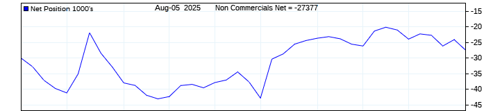 The top chart is fixed with the lower 3 panes available to show the various dataseries provided by the CFTC.