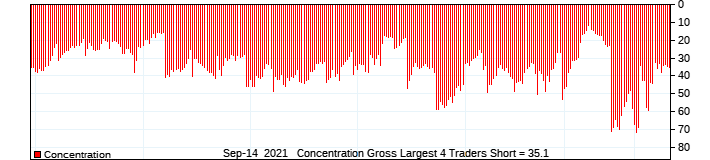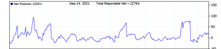 The top chart is fixed with the lower 3 panes available to show the various dataseries provided by the CFTC.