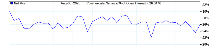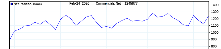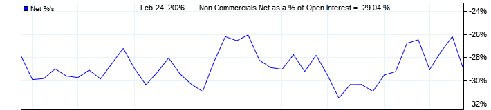The top chart is fixed with the lower 3 panes available to show the various dataseries provided by the CFTC.
