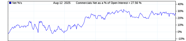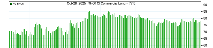 The top chart is fixed with the lower 3 panes available to show the various dataseries provided by the CFTC.