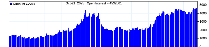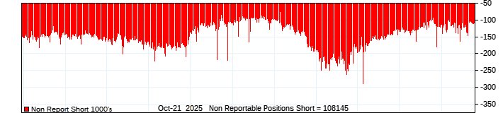 The top chart is fixed with the lower 3 panes available to show the various dataseries provided by the CFTC.
