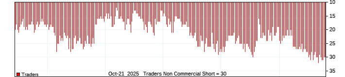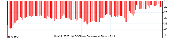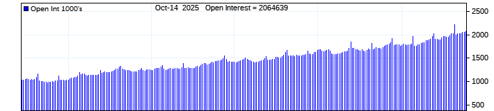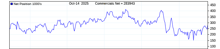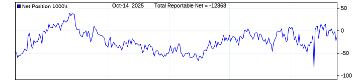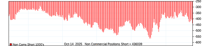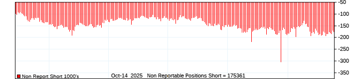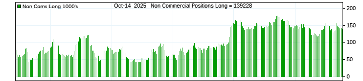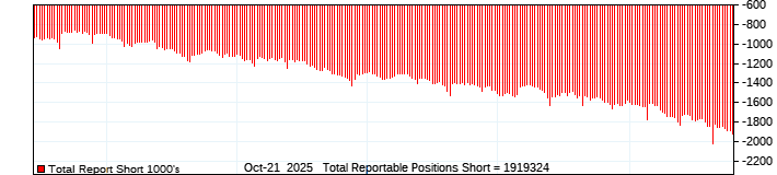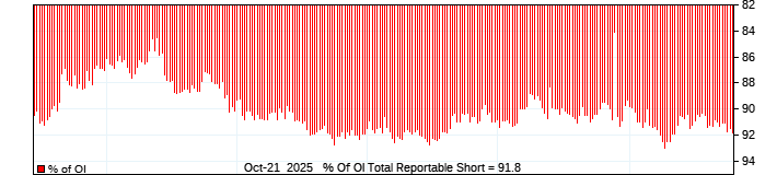 The top chart is fixed with the lower 3 panes available to show the various dataseries provided by the CFTC.