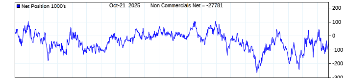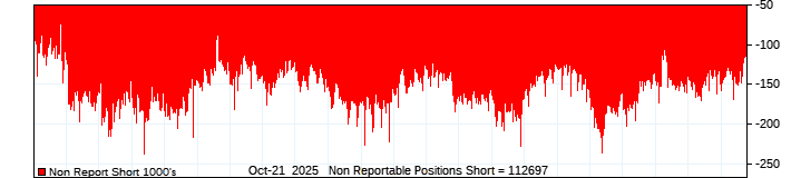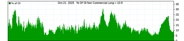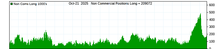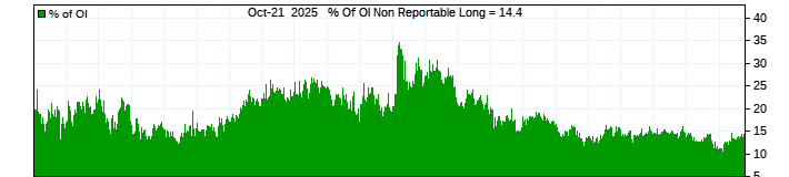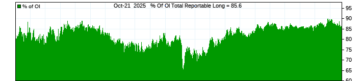 The top chart is fixed with the lower 3 panes available to show the various dataseries provided by the CFTC.
