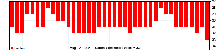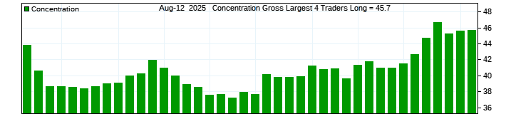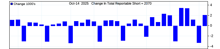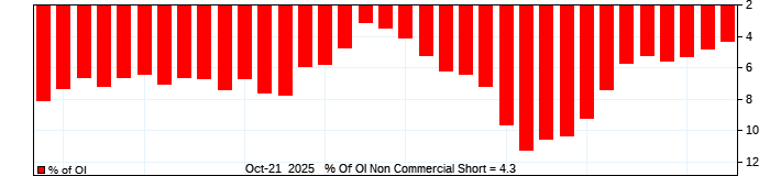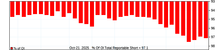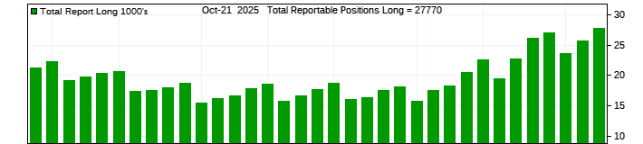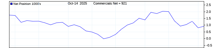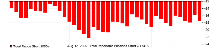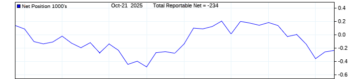The top chart is fixed with the lower 3 panes available to show the various dataseries provided by the CFTC.