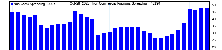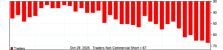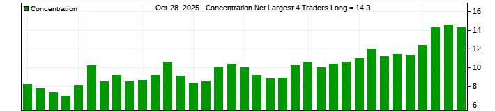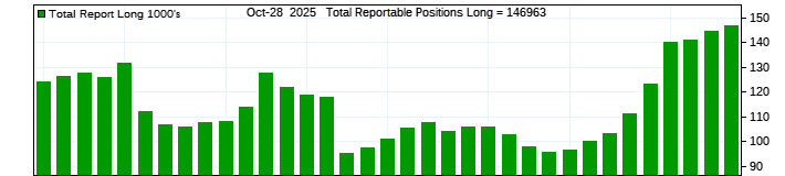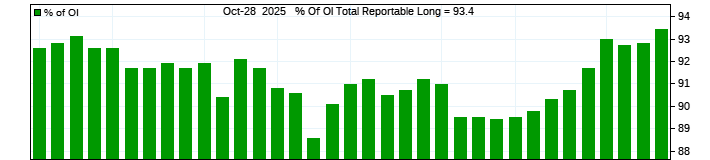 The top chart is fixed with the lower 3 panes available to show the various dataseries provided by the CFTC.