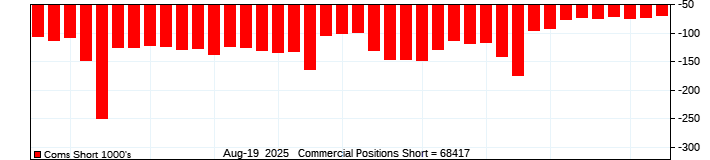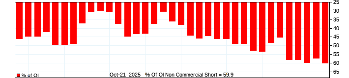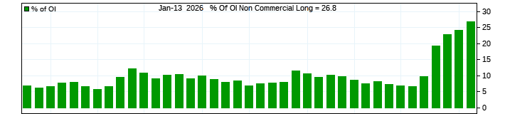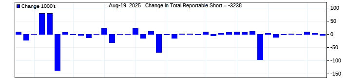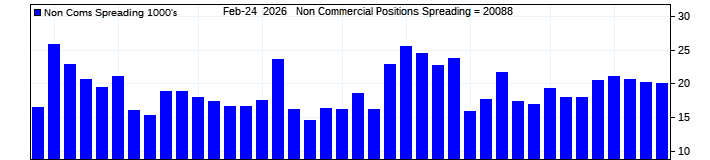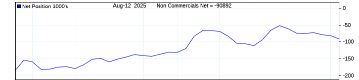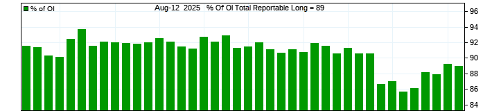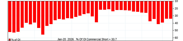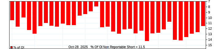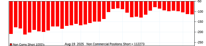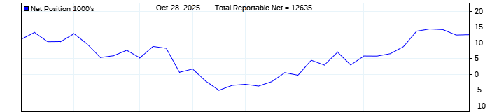 The top chart is fixed with the lower 3 panes available to show the various dataseries provided by the CFTC.