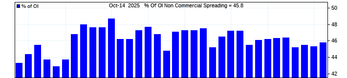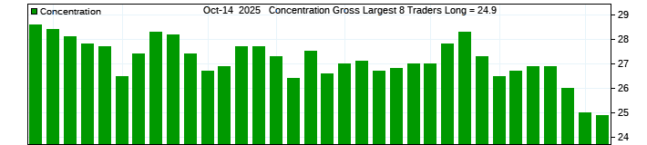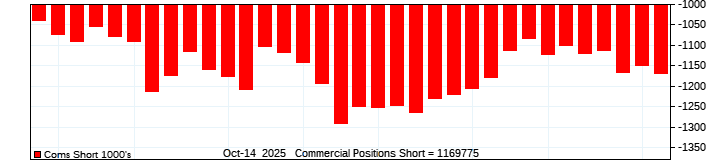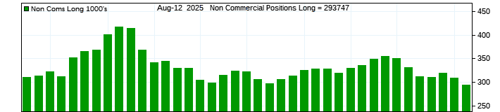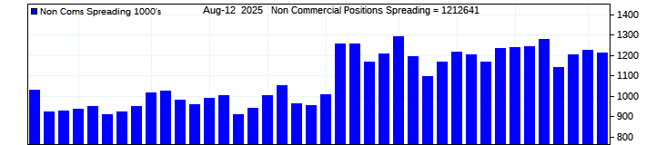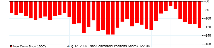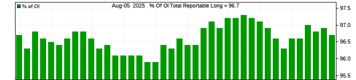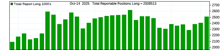 The top chart is fixed with the lower 3 panes available to show the various dataseries provided by the CFTC.