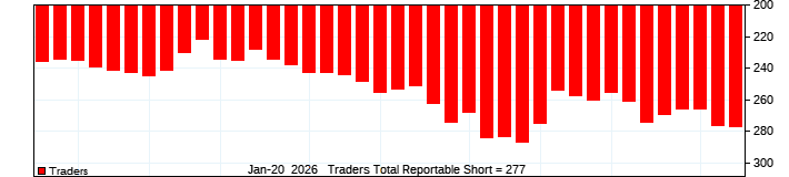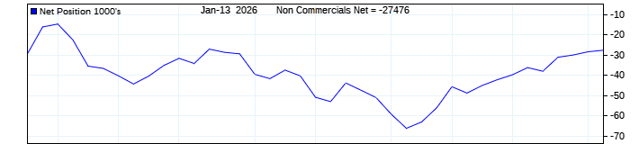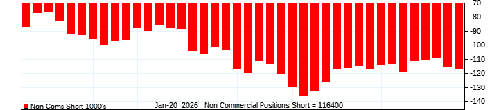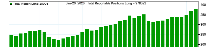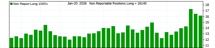 The top chart is fixed with the lower 3 panes available to show the various dataseries provided by the CFTC.