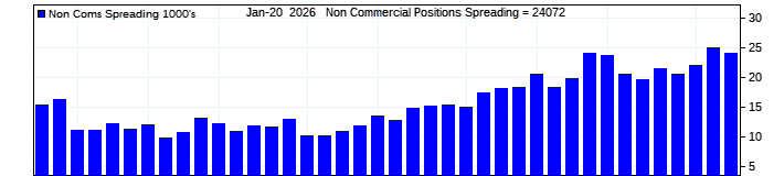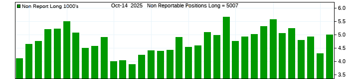 The top chart is fixed with the lower 3 panes available to show the various dataseries provided by the CFTC.