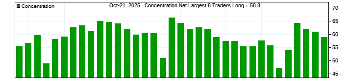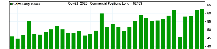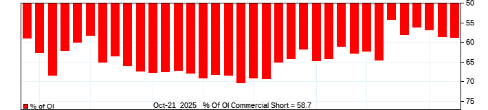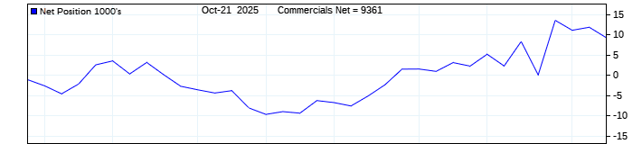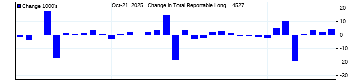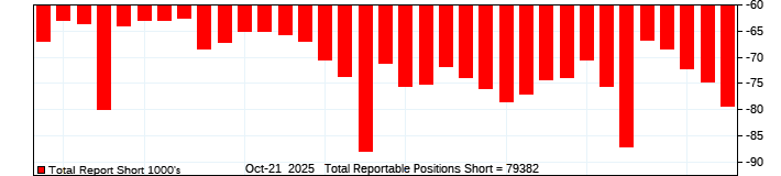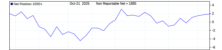 The top chart is fixed with the lower 3 panes available to show the various dataseries provided by the CFTC.