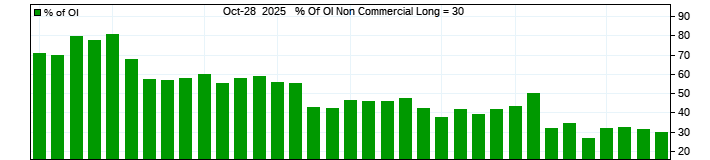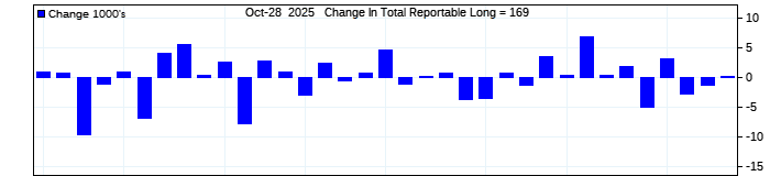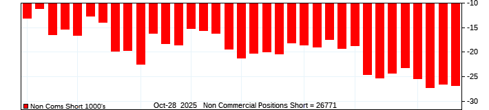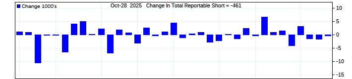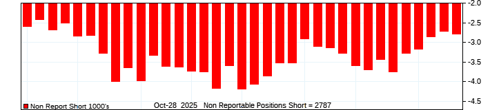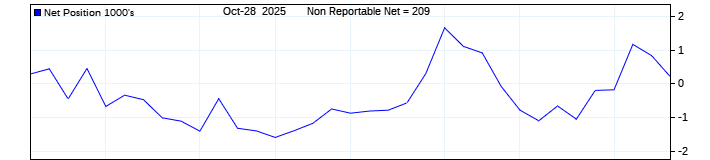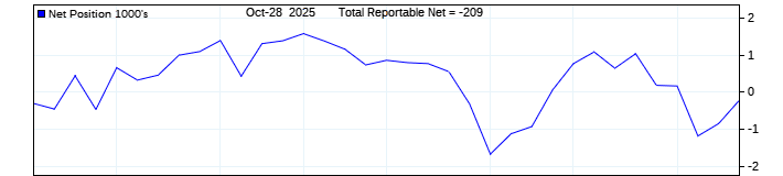The top chart is fixed with the lower 3 panes available to show the various dataseries provided by the CFTC.