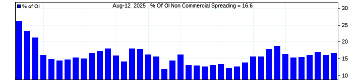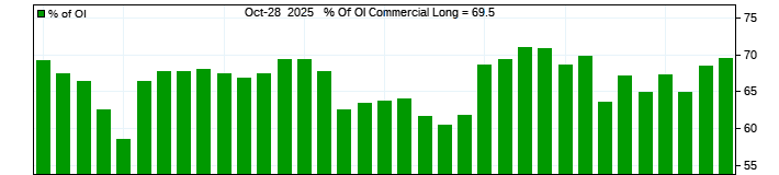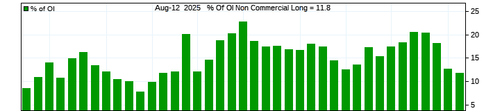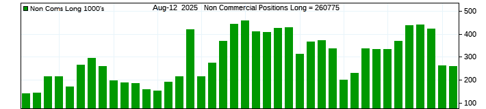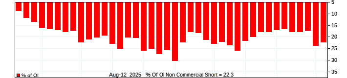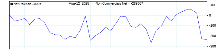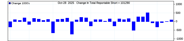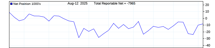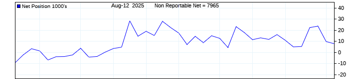 The top chart is fixed with the lower 3 panes available to show the various dataseries provided by the CFTC.