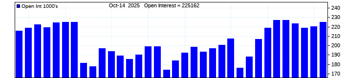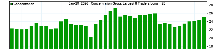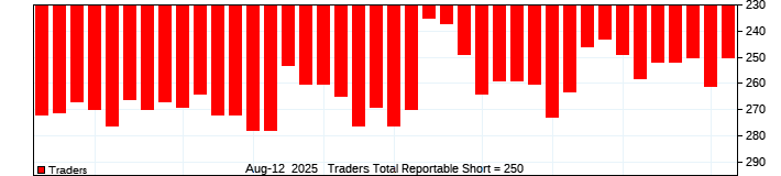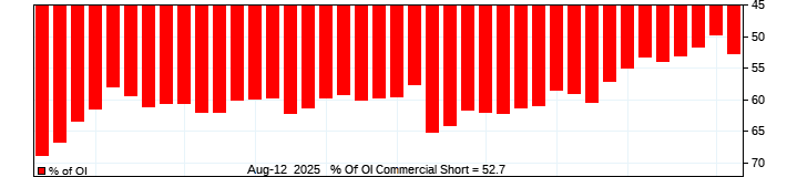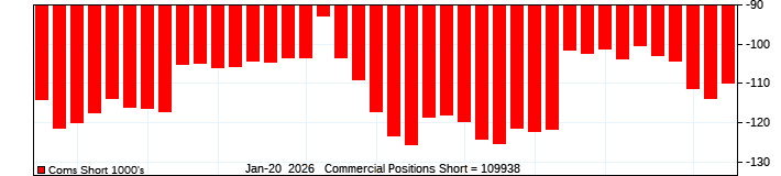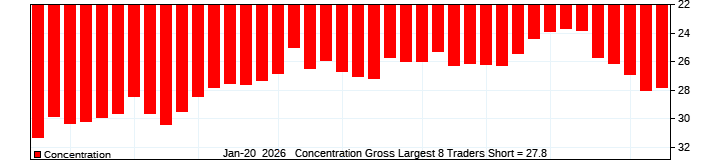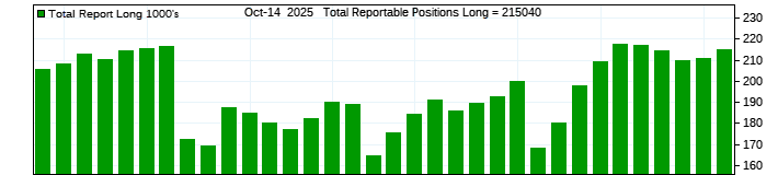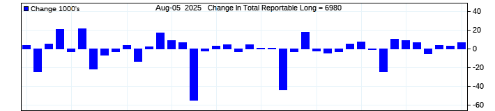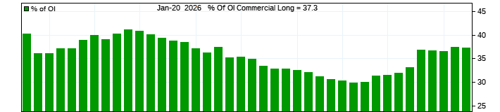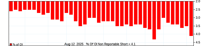 The top chart is fixed with the lower 3 panes available to show the various dataseries provided by the CFTC.