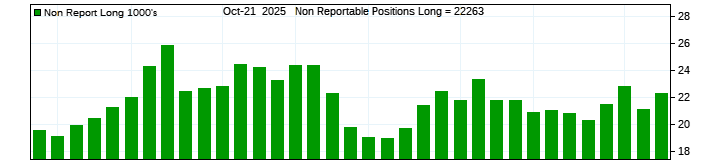 The top chart is fixed with the lower 3 panes available to show the various dataseries provided by the CFTC.