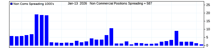 The top chart is fixed with the lower 3 panes available to show the various dataseries provided by the CFTC.
