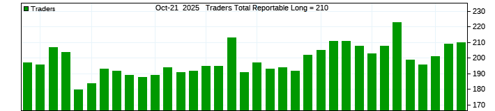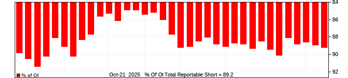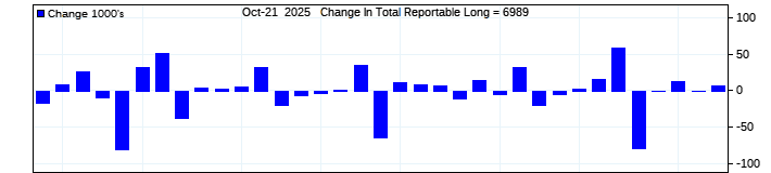 The top chart is fixed with the lower 3 panes available to show the various dataseries provided by the CFTC.