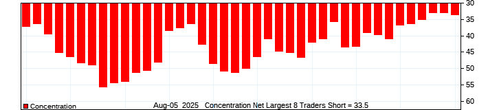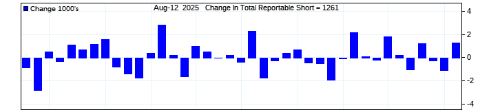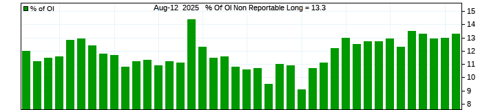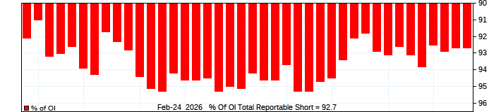 The top chart is fixed with the lower 3 panes available to show the various dataseries provided by the CFTC.