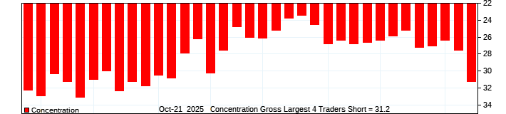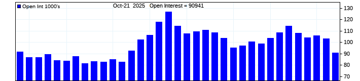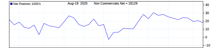 The top chart is fixed with the lower 3 panes available to show the various dataseries provided by the CFTC.