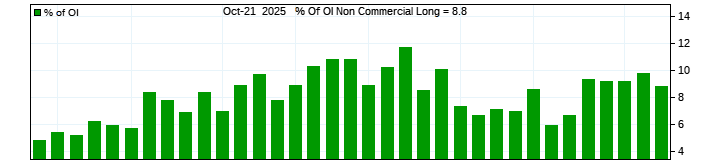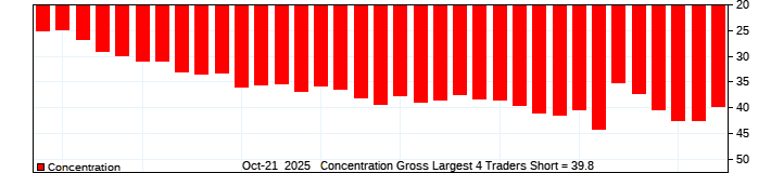 The top chart is fixed with the lower 3 panes available to show the various dataseries provided by the CFTC.