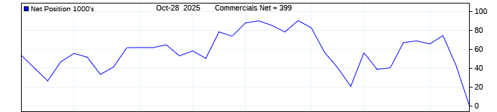 The top chart is fixed with the lower 3 panes available to show the various dataseries provided by the CFTC.