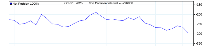 The top chart is fixed with the lower 3 panes available to show the various dataseries provided by the CFTC.