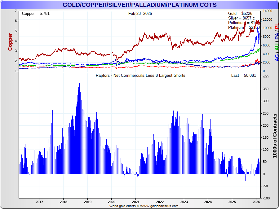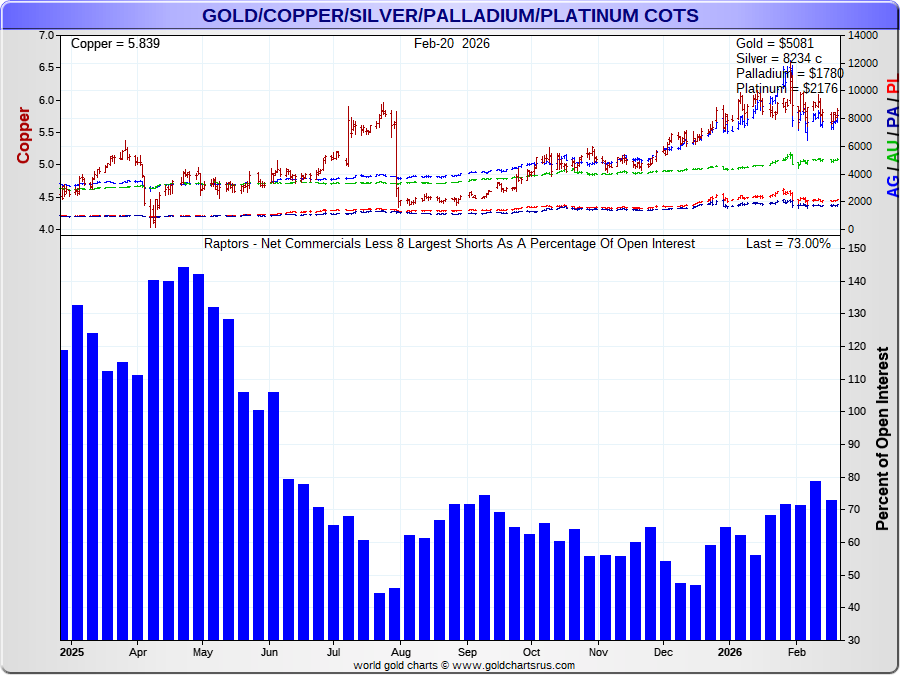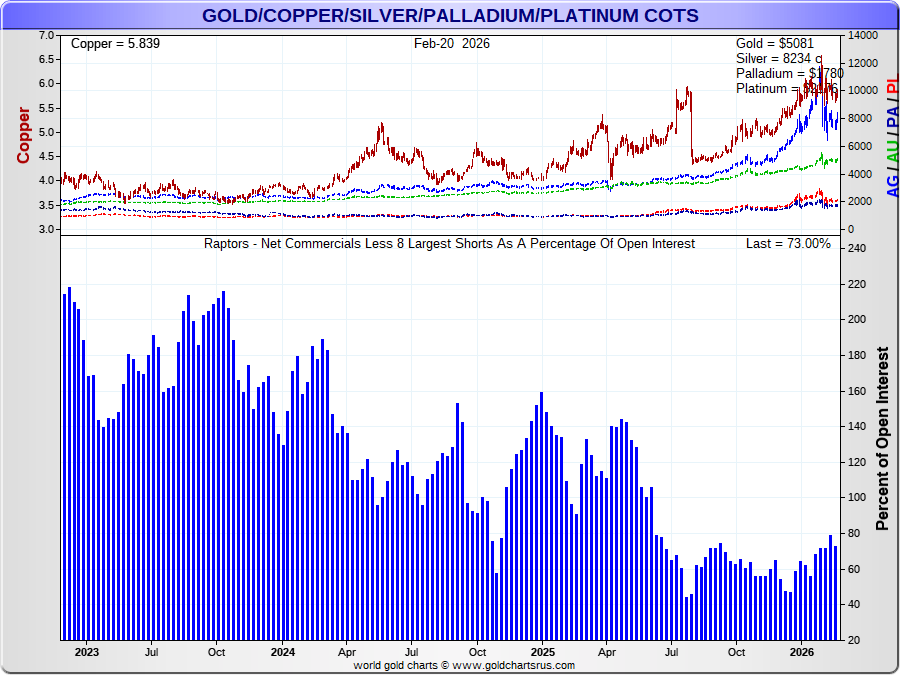 the Net Commercials vs Open Interest/Concentration 8 Largest Traders Short