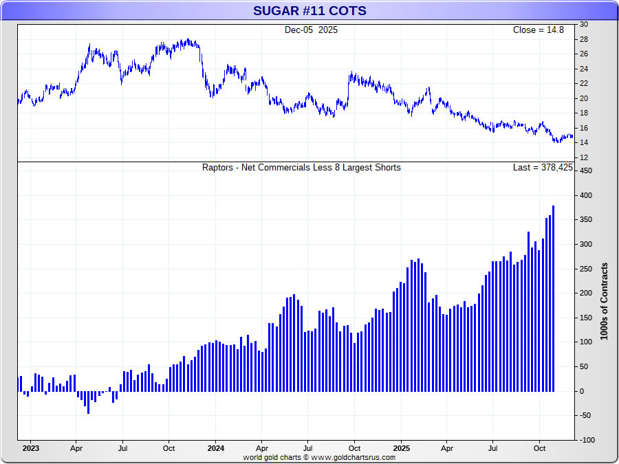the Net Commercials vs Open Interest/Concentration 8 Largest Traders Short