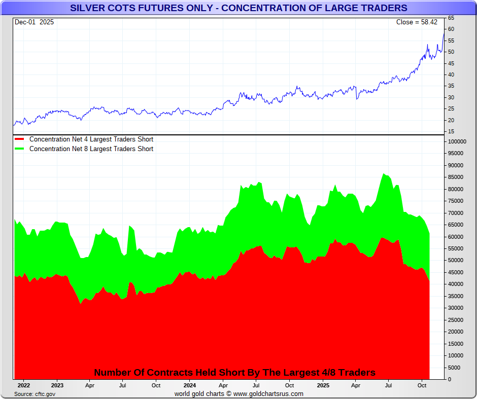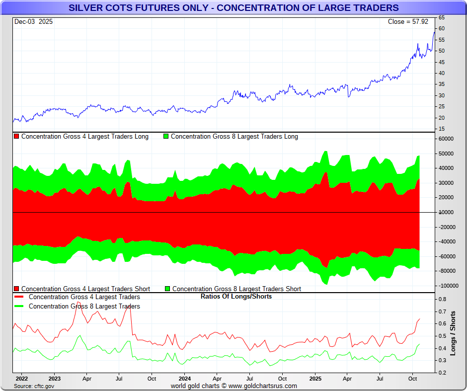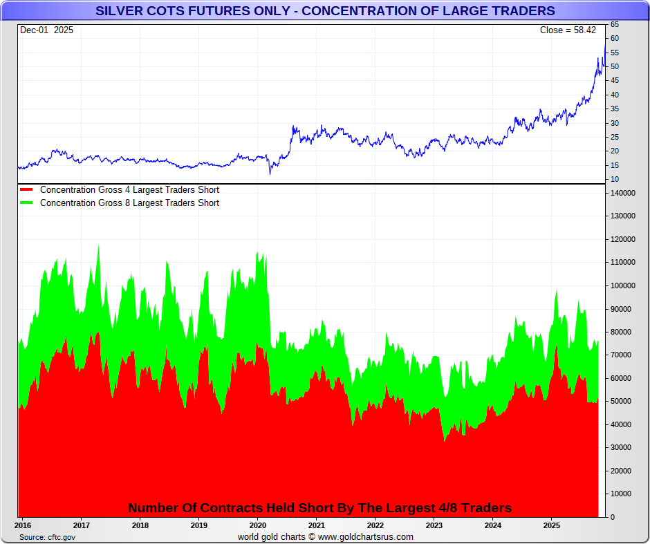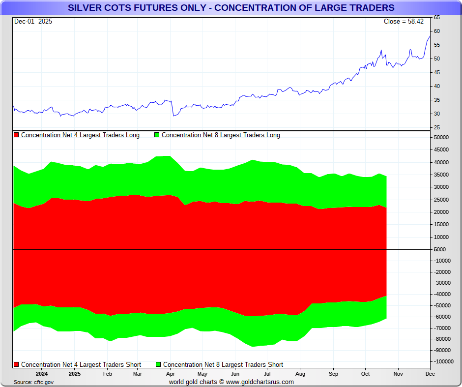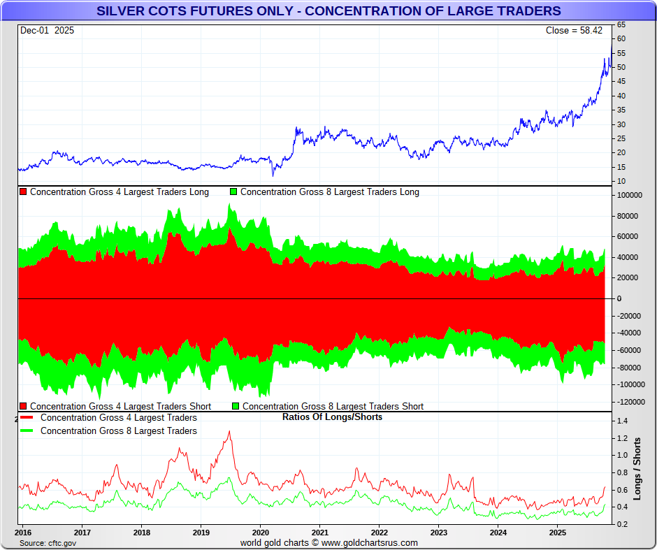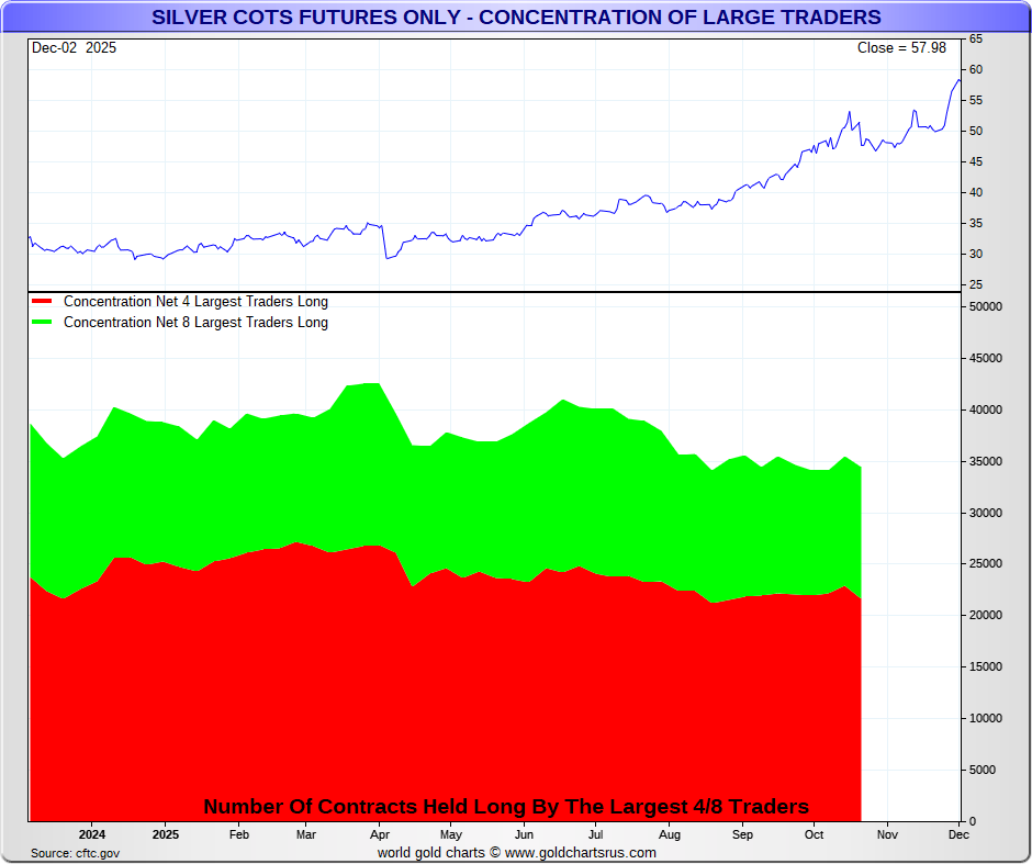 Concentration In The Largest 4 - Largest 8 Traders Positions