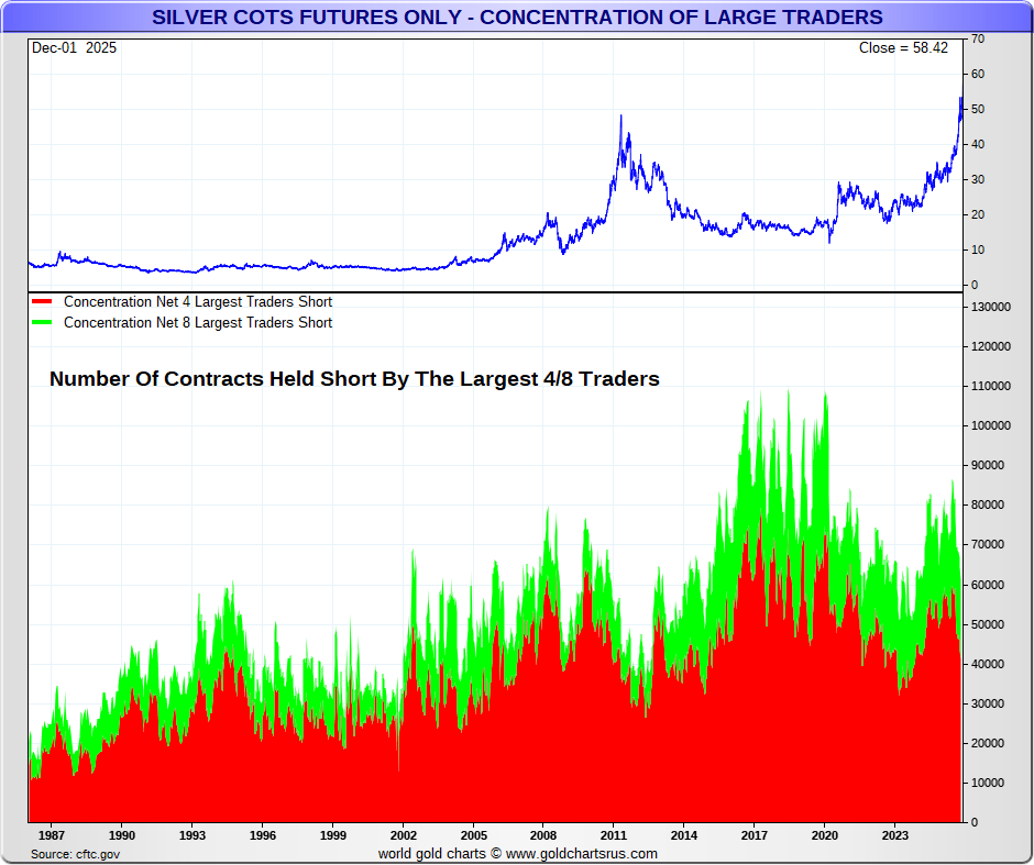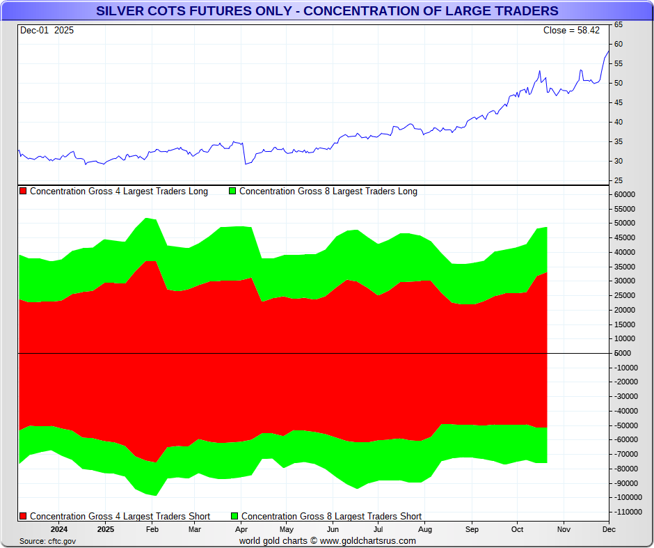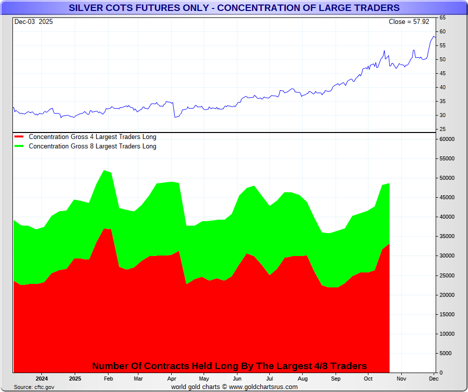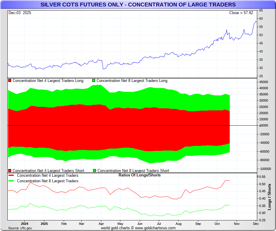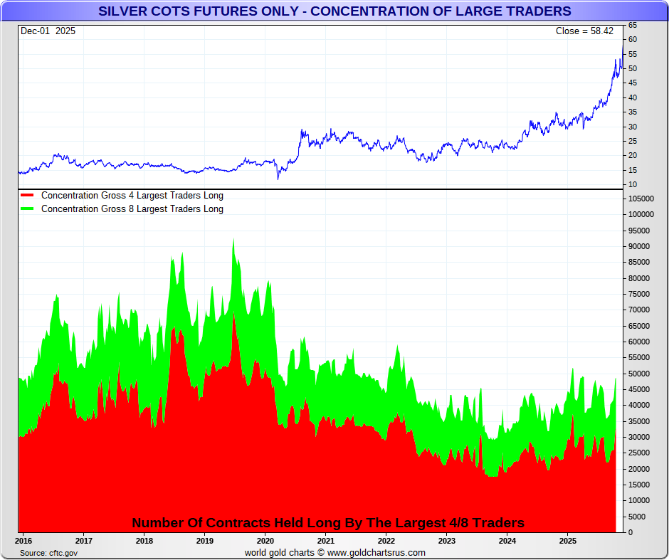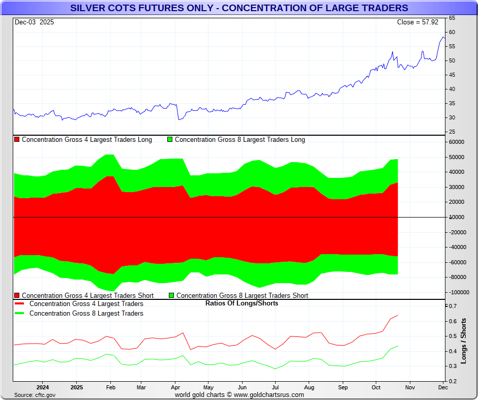 Concentration In The Largest 4 - Largest 8 Traders Positions