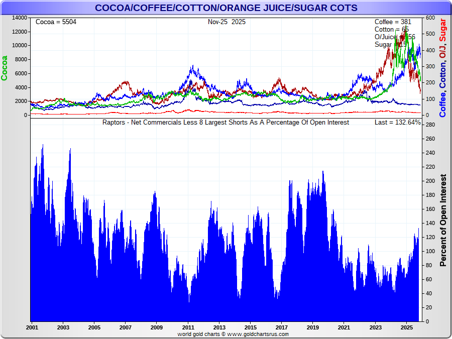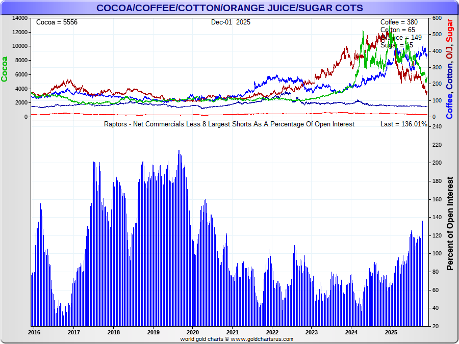 the Net Commercials vs Open Interest/Concentration 8 Largest Traders Short
