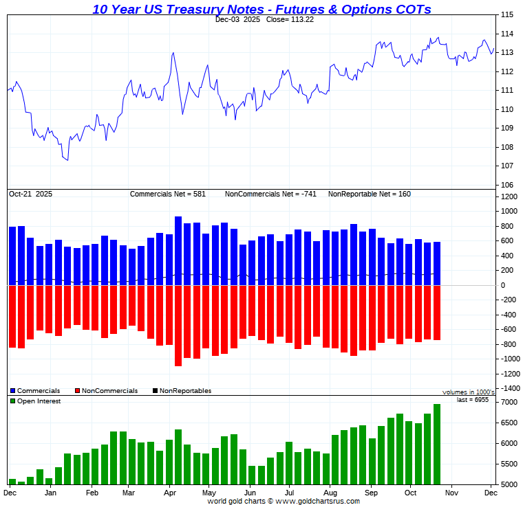 US TREASURY NOTES COT CHARTS COMMITMENT OF TRADERS REPORTS commercials - non commercials - non reportables long - short - net - trading positions |