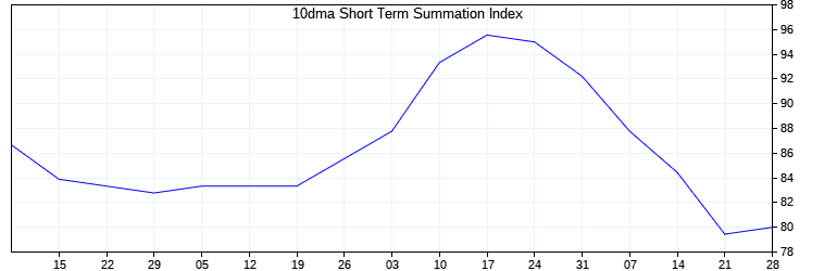 NOTE: dma's (daily moving averages) are wma's (weekly moving averages)for the BGMI Index.