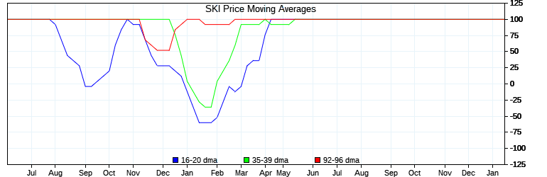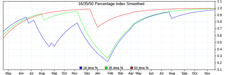 NOTE: dma's (daily moving averages) are wma's (weekly moving averages)for the BGMI Index.