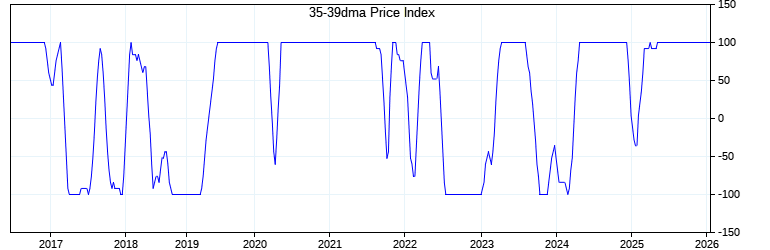 NOTE: dma's (daily moving averages) are wma's (weekly moving averages)for the BGMI Index.