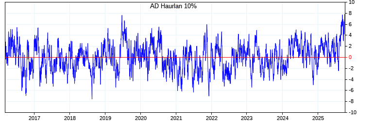 advancers ad haurlan 1% ud vol haurlan 1% ud $val haurlan 1% a-d/t 10x10dma 50dma bullish % stocks change price 16-20dma price index x