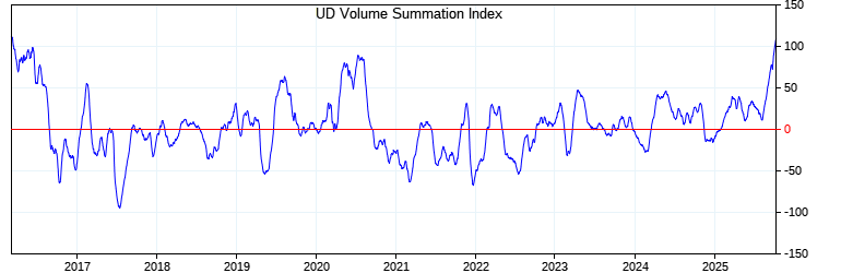 up $value ad bp 50dma ud vol bp 50dma ud $val bp 50dma 200dma deviation 80dma bp smoothed 52w h-l % ave st summation index