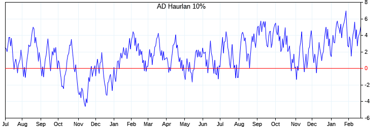 advancers ad haurlan 1% ud vol haurlan 1% ud $val haurlan 1% a-d/t 10x10dma 50dma bullish % stocks change price 16-20dma price index x