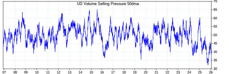 down volume ad buy pressure ud vol buy pressure ud $val buy pressure a-d/t 10x89dma 35dma bp smoothed 52w stock lows 92-96dma price index 100