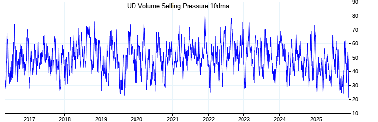 down volume ad buy pressure ud vol buy pressure ud $val buy pressure a-d/t 10x89dma 35dma bp smoothed 52w stock lows 92-96dma price index 100