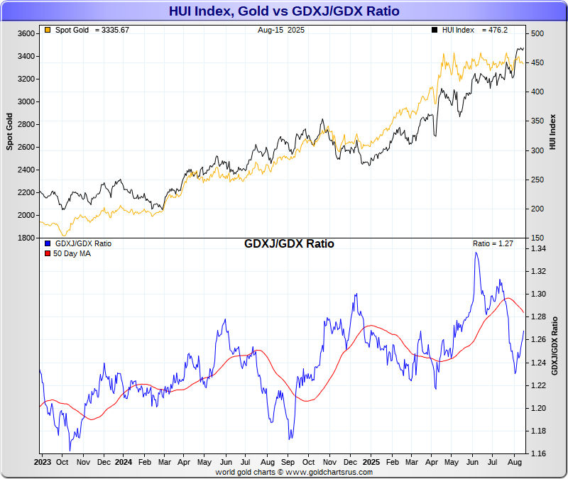 HUI Index & Gold vs GDXJ/GDX Ratio