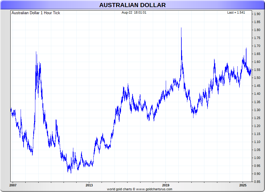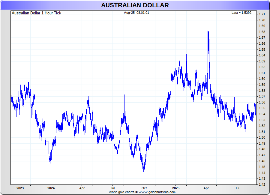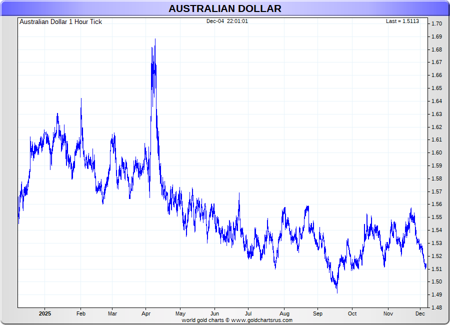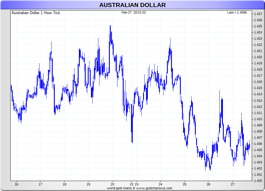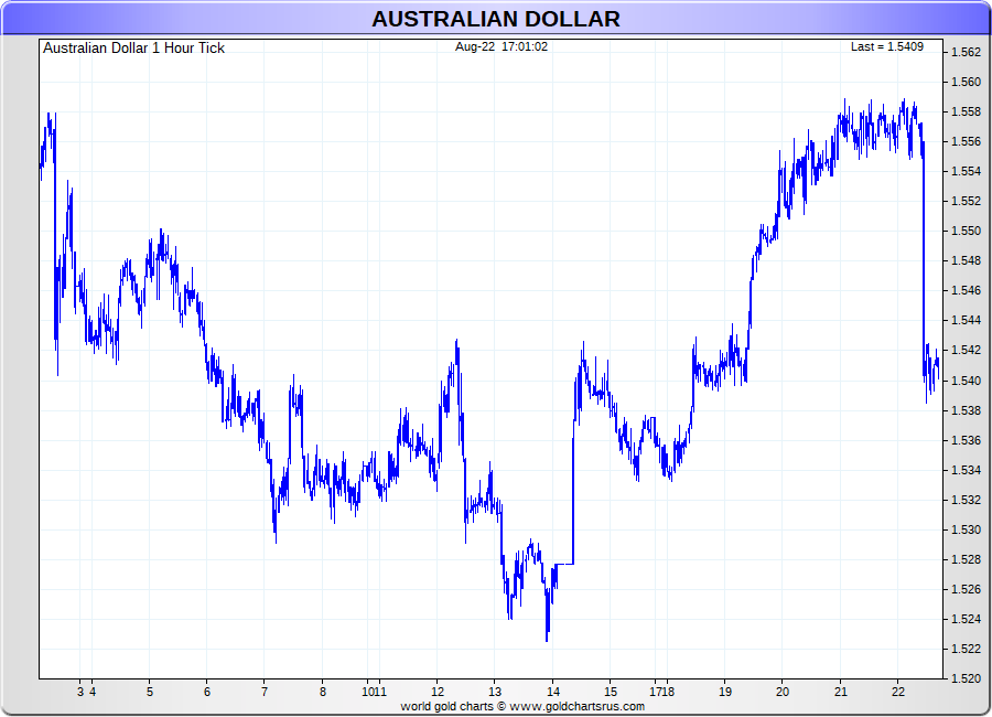Spot Australian Dollar - 60 Minute Tick Charts - 24 hours / 5 1/2 days - GCRU Precious Metals Charts
