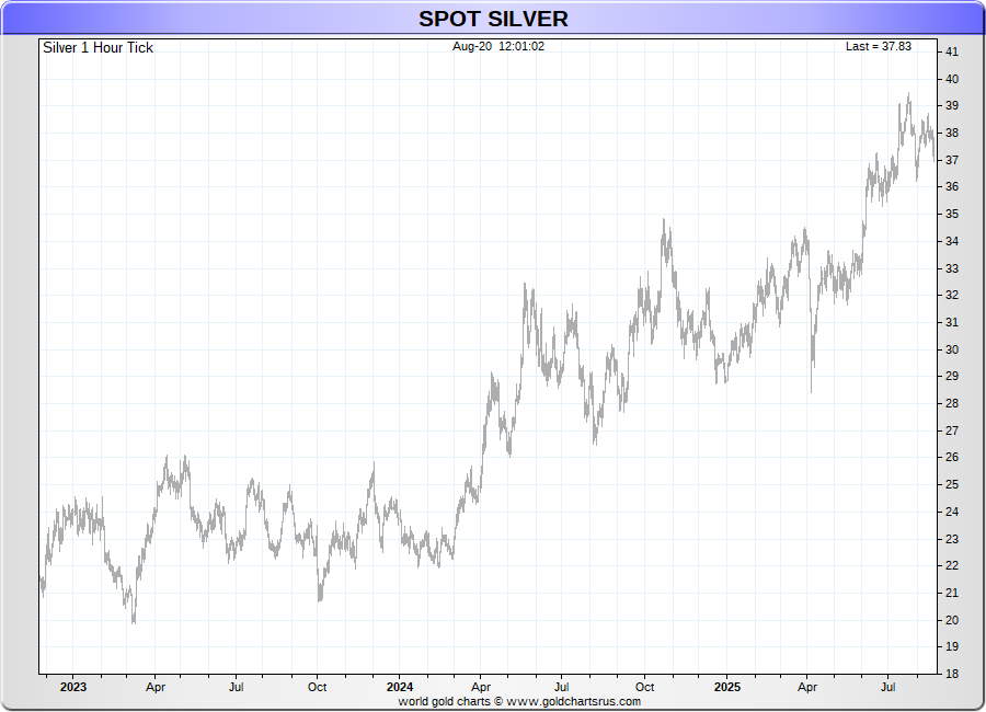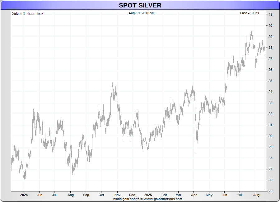 Spot Silver - 60 Minute Tick Charts - 24 hours / 5 1/2 days - GCRU Precious Metals Charts
