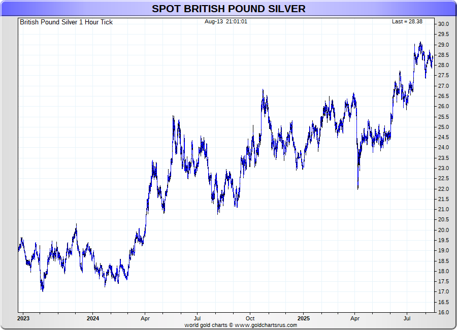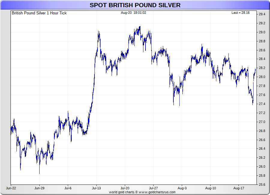 Spot British Pound Silver - 60 Minute Tick Charts - 24 hours / 5 1/2 days - GCRU Precious Metals Charts