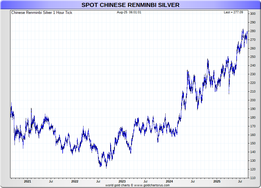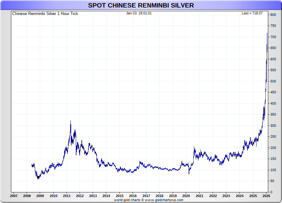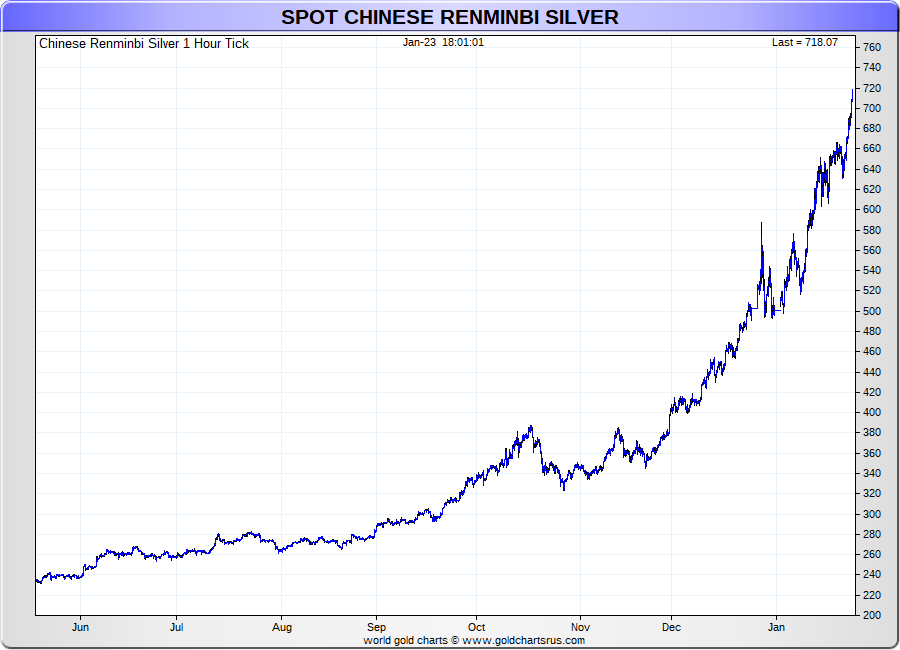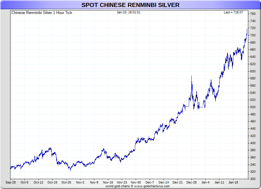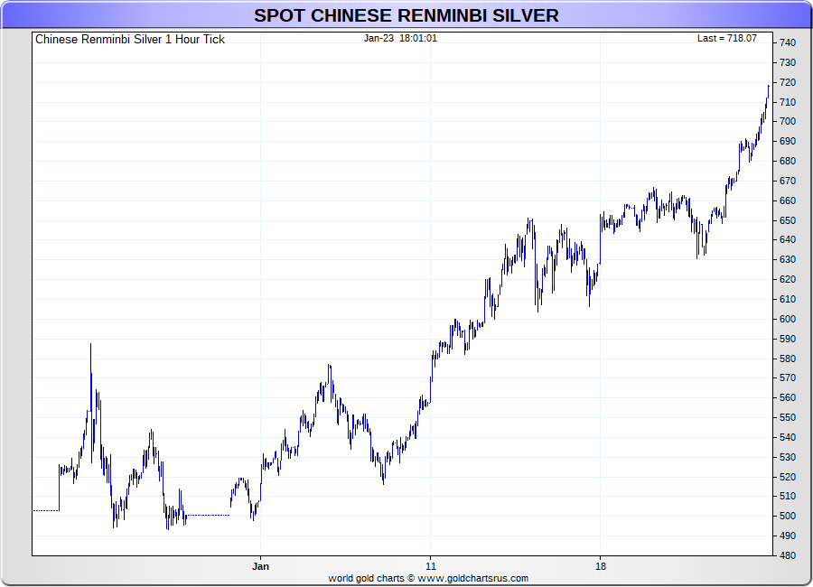 Spot Chinese Renminbi Silver - 60 Minute Tick Charts - 24 hours / 5 1/2 days - GCRU Precious Metals Charts