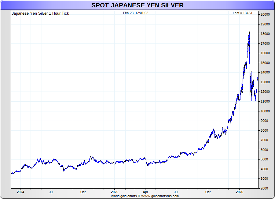 Spot Japanese Yen Silver - 60 Minute Tick Charts - 24 hours / 5 1/2 days - GCRU Precious Metals Charts