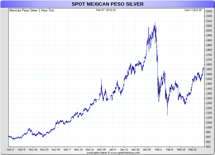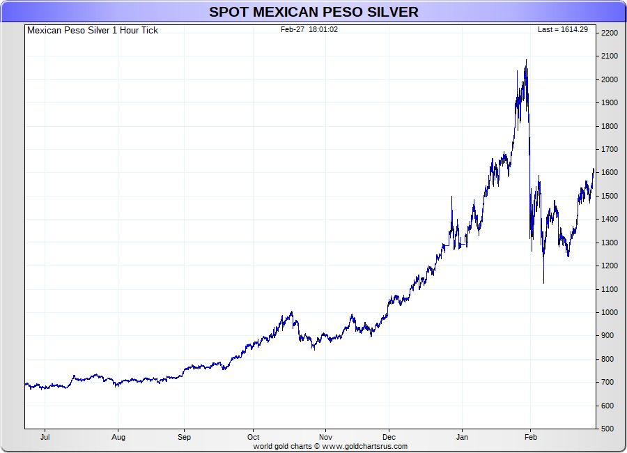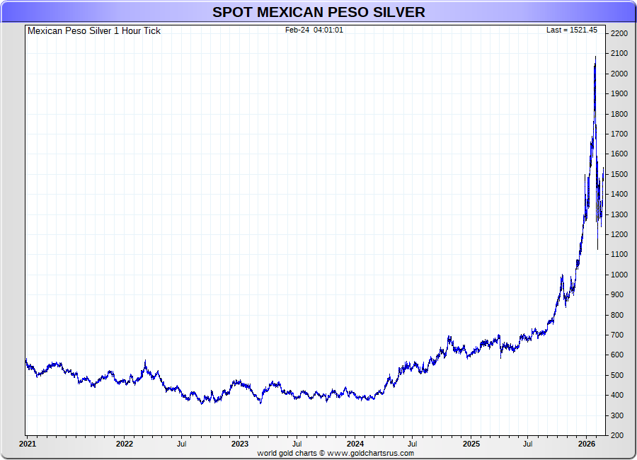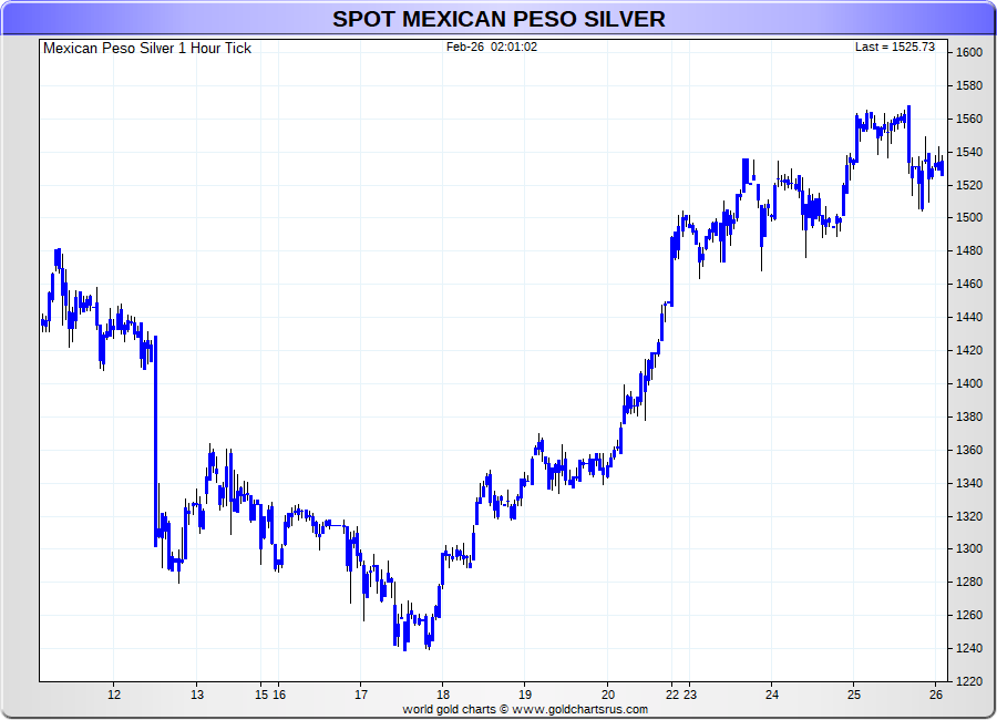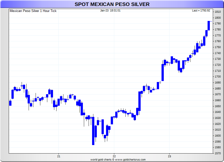 Spot Mexican Peso Silver - 60 Minute Tick Charts - 24 hours / 5 1/2 days - GCRU Precious Metals Charts