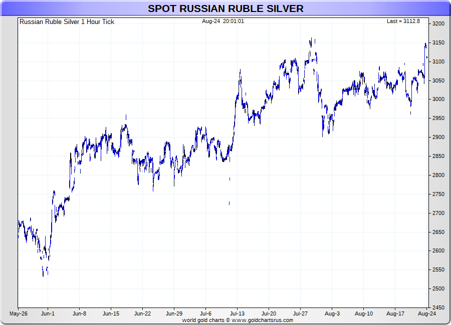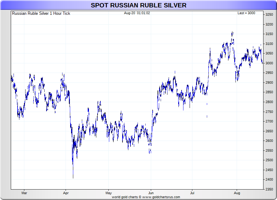 Spot Russian Ruble Silver - 60 Minute Tick Charts - 24 hours / 5 1/2 days - GCRU Precious Metals Charts