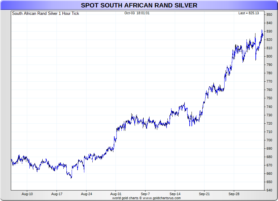 Spot South African Rand Silver - 60 Minute Tick Charts - 24 hours / 5 1/2 days - GCRU Precious Metals Charts